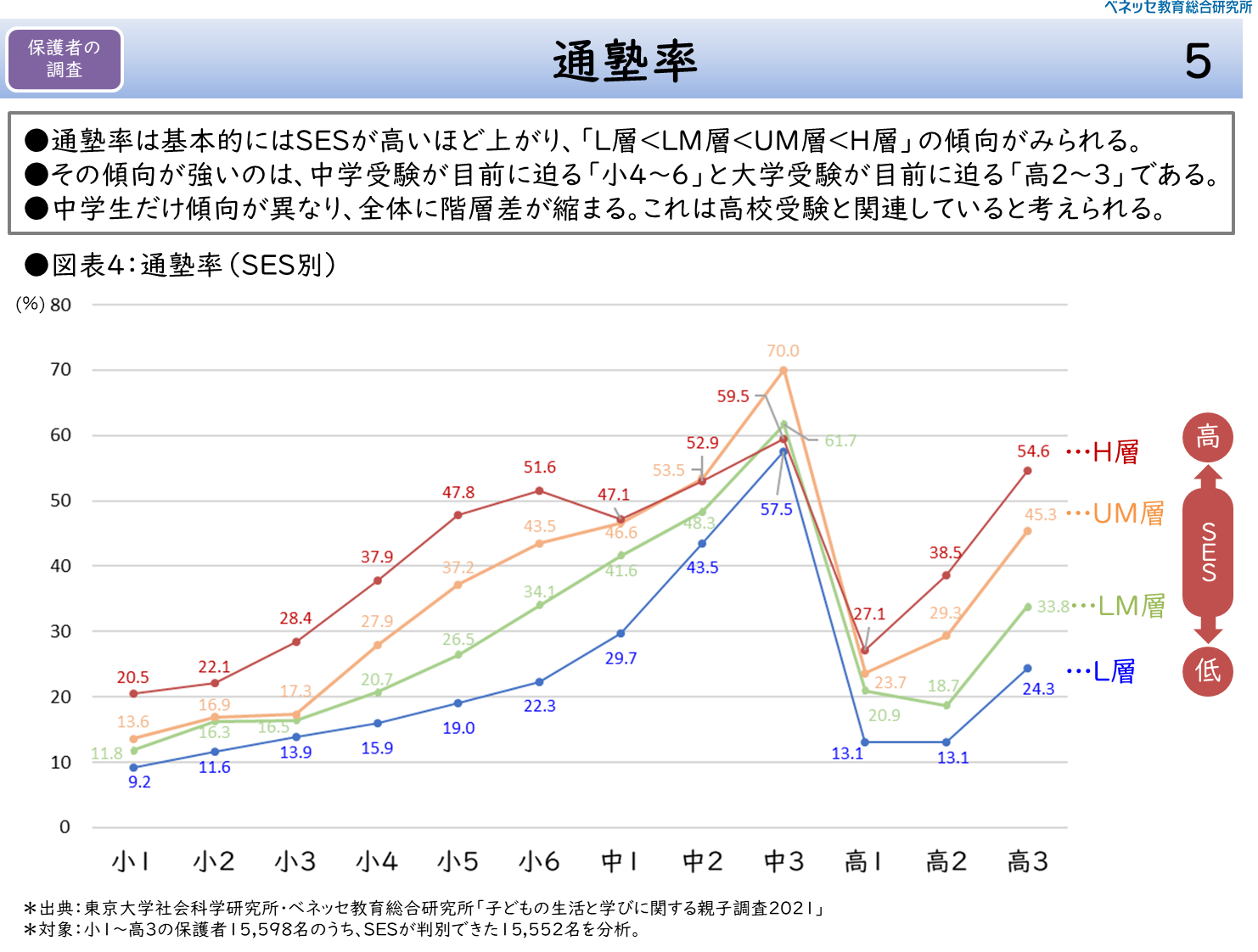 SESによる通塾率の違い—これもH層はL層の2倍