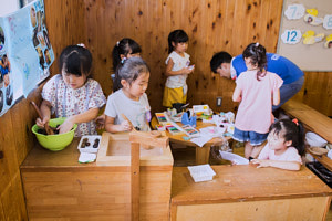 中山理事長は、遊びを「自分がやりたいことを自分で決める行為」と考える。ものづくりコーナーで作るものも、ごっこ遊びのコーナーで営まれるお店で売られる商品やその値段も、決めるのはすべて子どもたち自身だ。同じお店が1か月以上続くこともあれば、1日で終わってしまうこともある。長期間続かないからといって、周りにいる保育者たちが何かを無理強いすることは決してない。