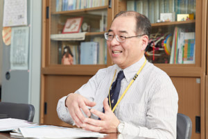 2017年度からタブレット教材導入学年の主任を務める 小川 欣也 教諭は、導入時には運用面での苦労もあったと話す。「最初は、使おうとしたときに保管庫から各自のタブレットを取り出して電源を入れてからネットにつながるまでにタイムラグがあったり、ネットにつなごうと思っても上手くつながらない端末がクラスに数台出たりと、環境面の要因でスムーズに活用できないことがあった。加えて、当初は教員も生徒もタブレット教材にあまりなじみがなかったため、どんな機能がついていてどんな学習ができるのか、手探りで進めざるを得ず何をするにも時間がかかった。ただ、教員よりも生徒の方が早くタブレット教材に慣れて、適応できるようになっていたかもしれない。」