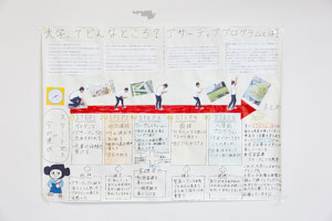 同じく、高校生のためになることをしたいと考えていた瀬々さんと山下さんも、アサーティブスタッフの一員だ。自らの高校時代を振り返り、アサーティブスタッフによる個別面談やグループディスカッションの練習場所、大学生活などに関するポスターなど、高校生のためにと考えたアイデアを実行に移している。辻川さんが1人で立ち上げたアサーティブスタッフは、同じ想いを持つ同期や後輩を巻き込み、今や50名ほどの団体にまで成長している。