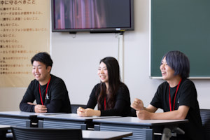 そしてその信頼関係は、ときに学びや経験のさらなる原動力ともなりうる。たとえば、追大で非常に印象的だった場面がある。「この子たちをすっかり頼りにしてしまって、ほとんど任せてしまっているんですよ。」と笑顔で話す志村氏を前に、アサーティブ1期生の学生たちは「志村さんをはじめとするアサーティブ課職員には、入試前からとてもお世話になった。だからその『恩』を今度は自分たちが、アサーティブスタッフとして高校生につないでいきたい。」とイキイキと話してくれた。
