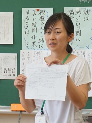 「国語は、授業の中でどのような能力を伸ばしたいのかぼんやりしがちですが、今回は『考えを形成する能力を伸ばす』ことに焦点化して単元を構成しました。このまま、子どもの『メタ認知力』を働かせ、子ども自身にどんな力をつけたいのかという目標を立てさせ、どんな学習をしたら良いか見通しを持たせたいと考えました」