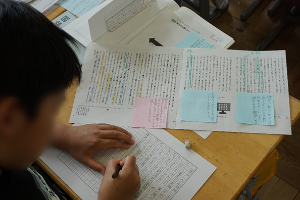 「自分の力を評価するのは、大人でも難しいことです。そこで、子どもたちには自分が書いた文章とモデルの文章を『比較』させ、今の自分の力をモニタリングし、次はどのように自分の考えをもって書けるようになりたいのかをプランニングさせようと考えました」