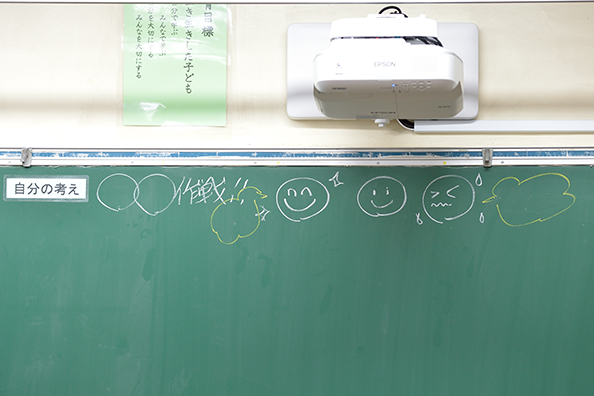 5分後、清水先生は黒板に3つの顔のマークを描き、子どもたちに次のように話した。