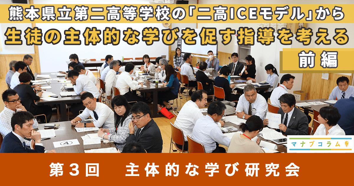 生徒の深い学びにつなげるために、ICEモデルなどを取り入れた授業づくりを進める熊本県立第二高等学校。2019年11月に同校が開催した「学校オープンデー」に、「主体的な学び研究会」のメンバーが参加し、同校の授業を研究事例として第3回研究会を実施した模様をレポートする。