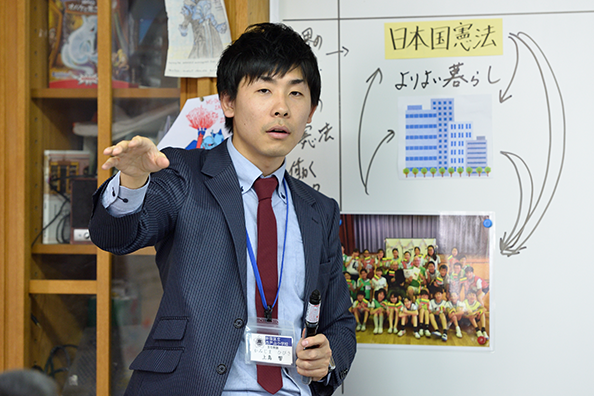 「例えば、ユニバーサルデザインについて学んだ授業の後と、子どもが、『駅前の点字ブロックの上に自転車がとめられているのを見て、自転車を少し移動させた』と教えてくれました。このように、授業で学んだことを自分の生活に生かせるような子どもを増やしていきたいと考えています。そこで意識しているのが、社会の授業のなかで、子どもに今どこに立っているのか、自分の立ち位置をメタ認知させることです。今日の授業であれば、日本国憲法を学び、より良い社会をつくるために自分たちは何ができそうか、自分の考えを持たせる授業づくりをしました」(上島先生)