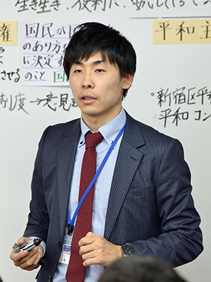 上島先生が社会の授業で大切にしているのは、自分は社会のどこに立っていて、これから何をすべきなのか、自分の考えを持たせることだという。