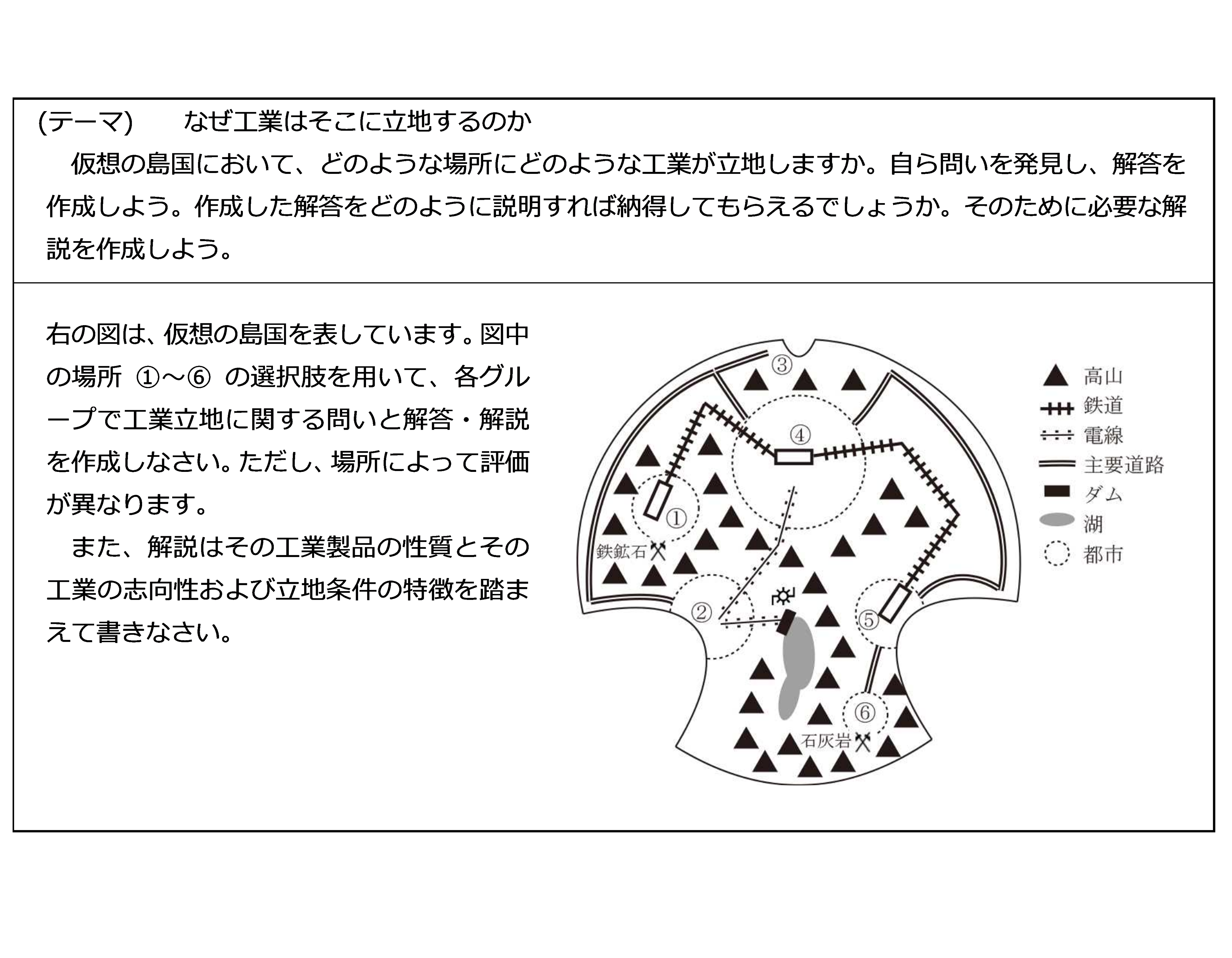 図2に示す課題は、昨年度、広島県立高陽高等学校 河野幸夫主幹教諭が授業「地理B工業立地」で実践したものです。