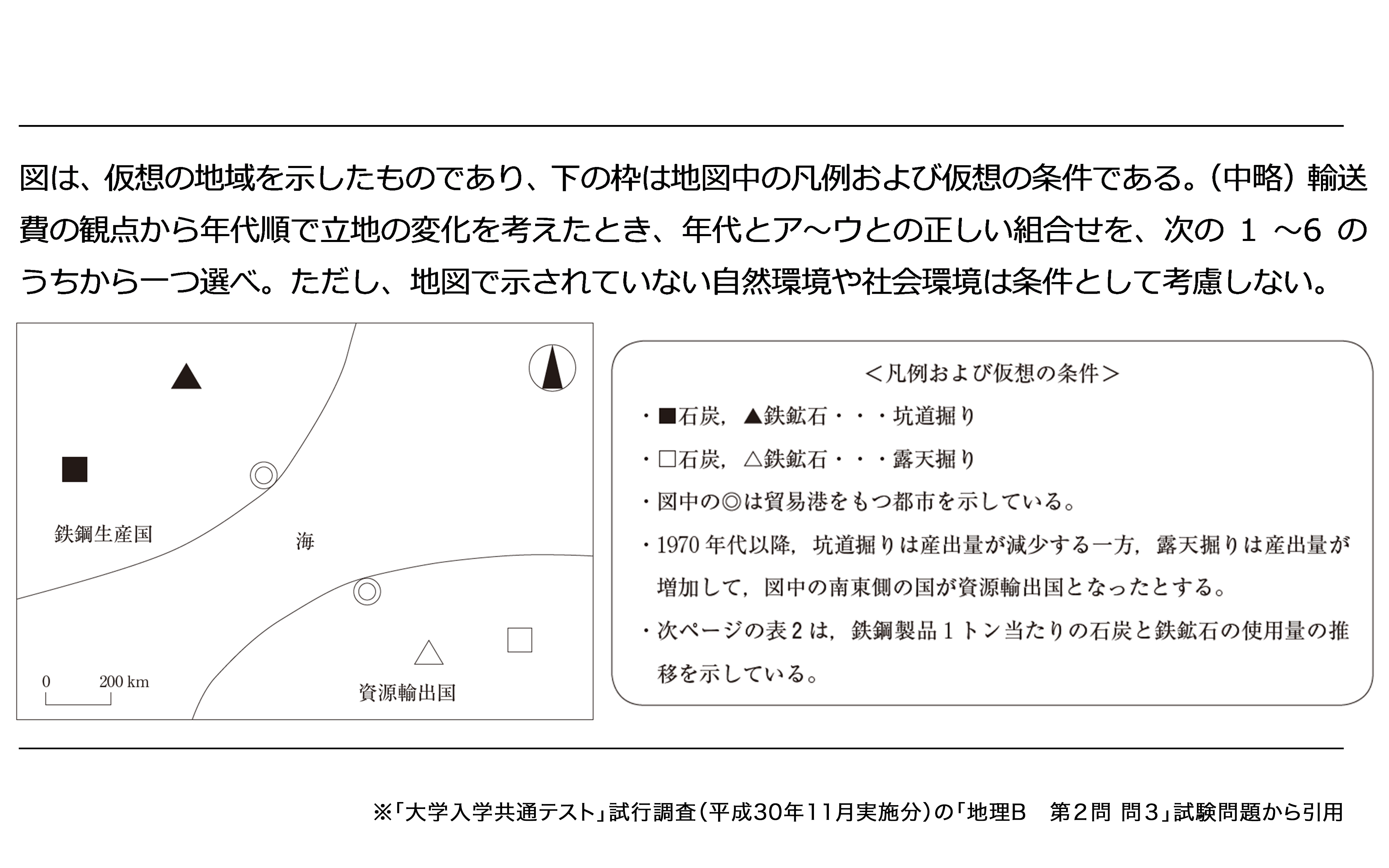 平成30年11月に行われた大学入学共通テストの試行調査で、地理Bの第2問