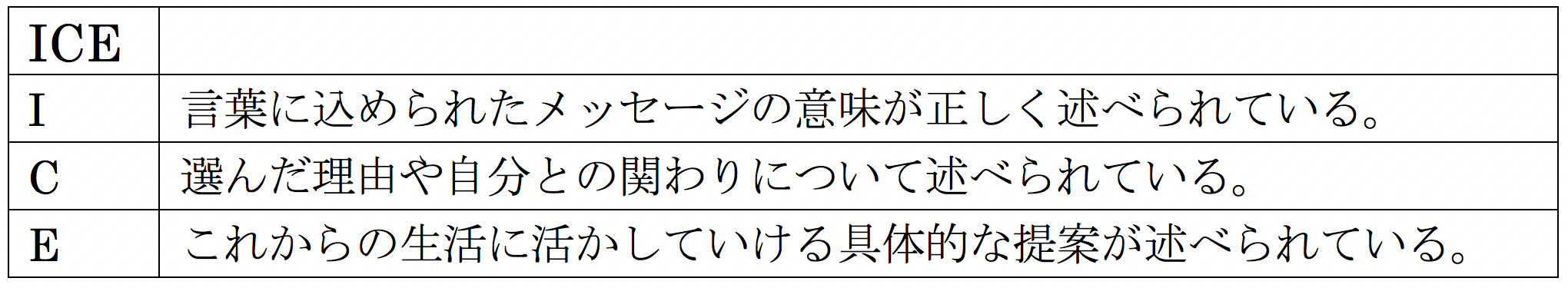 このようにICEモデルを学習のフェーズとしてとらえると同時に、レベルとして生徒と教員が共通理解できる評価に使うこともできます。