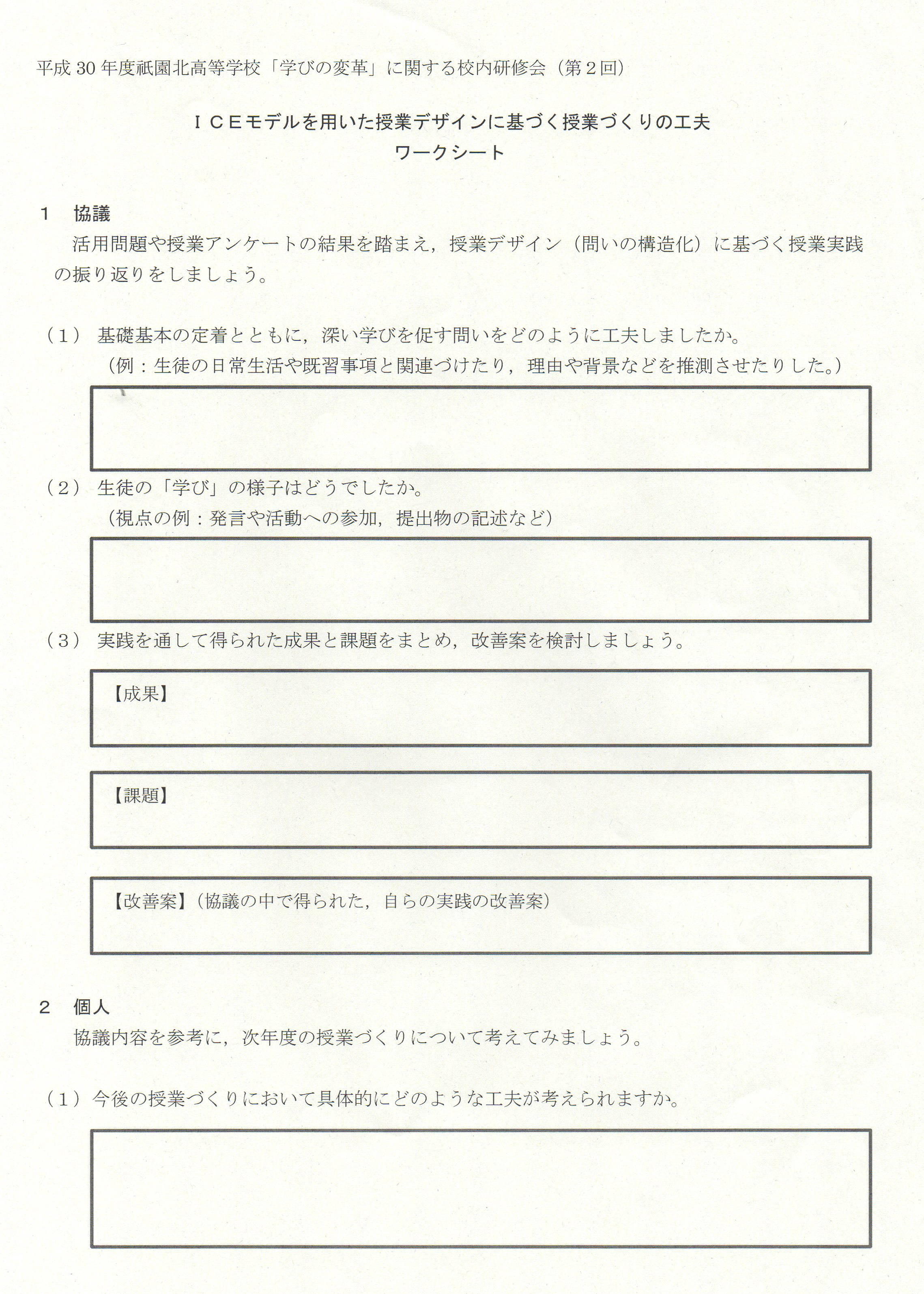 (2)「学びの変革」の中心にICEモデルの活用を置く