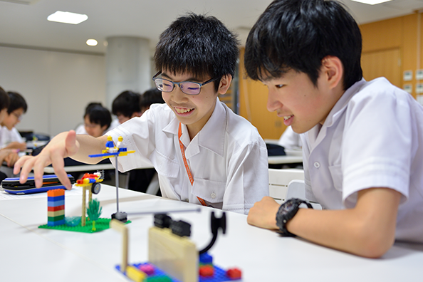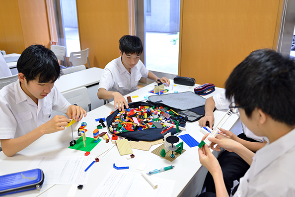 高校1年生から本格的に取り組む探究学習の基礎となるのが、中学3年生で行う「探究基礎」だ。2018年度からは、数学科の名塩隆史先生が担当となり、「レゴ®シリアスプレイ®」メソッド(以下、LSP)を活用し、想像力や創造力、表現力などのトレーニングを行っている。今回は、第5回の授業の様子を紹介する。