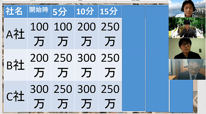 ゲームのルールを飲み込めていない人、Zoomの利用が初めてで使い方が分からない人など、戸惑う参加者もいたが、各社とも理解している人が周りをリード。そうした事態を田中先生も想定したが、中学生でも同程度のルール説明で授業が成立した経験から、「とりあえずやってみましょう。やってみないと分からないですから」と背中を押し、各社は動き出していった。