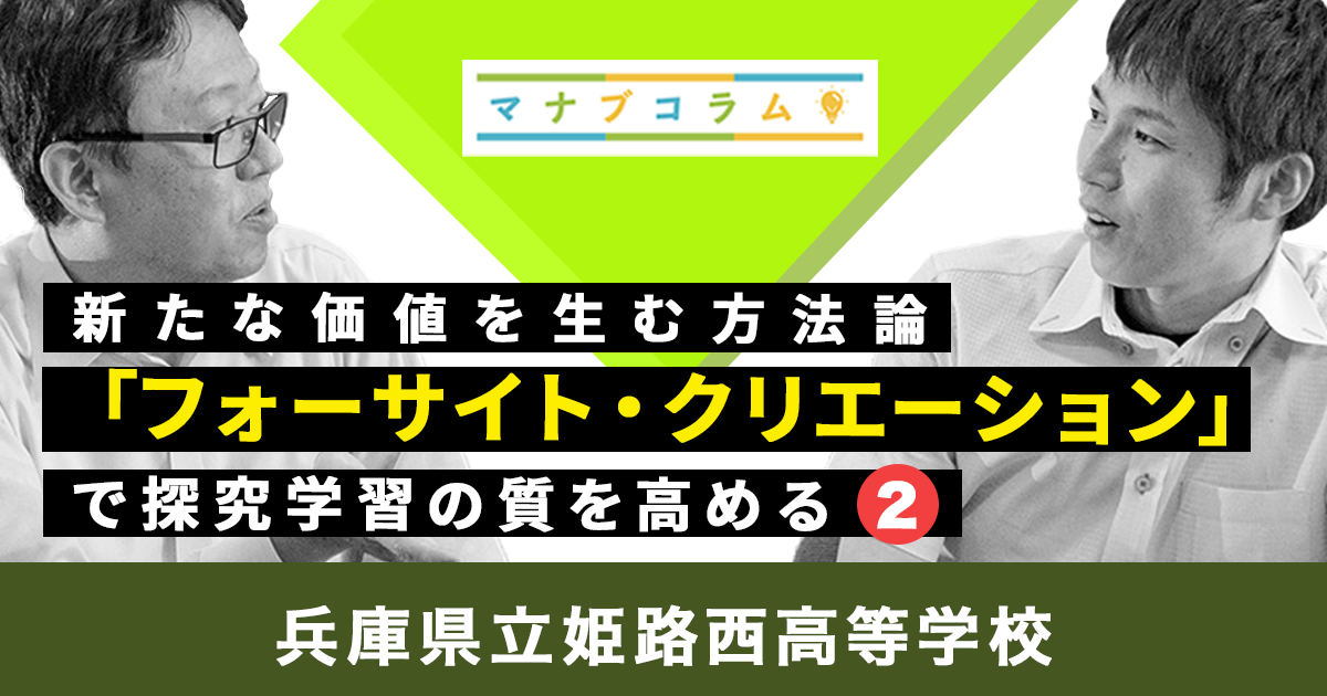 生徒の課題設定力を高めようと、兵庫県立姫路西高等学校(以下、「姫路西高等学校」)では、1年生の探究学習の授業において、「フォーサイト・クリエーション」を学ぶ講座を設けた。「課題研究(探究学習)」担当の国際理学科長の林宏樹先生と、講師を務める大阪ガス行動観察研究所の松波晴人所長に、「フォーサイト・クリエーション」を取り入れたねらい、期待する効果などをうかがった。(前回の①では授業の様子をお伝えしております。くわしくはコチラをご覧ください。)