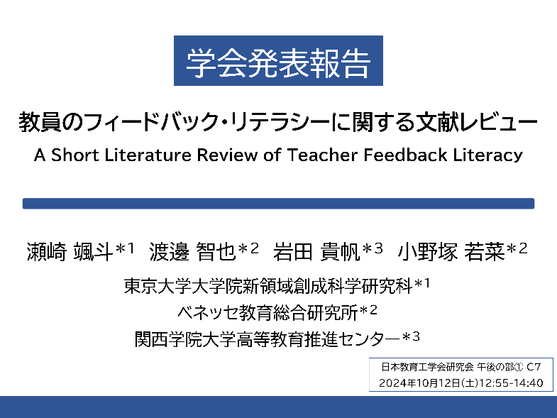 【学会発表報告】「教員のフィードバック・リテラシーに関する文献レビュー」(日本教育工学会研究会2024年10月開催)