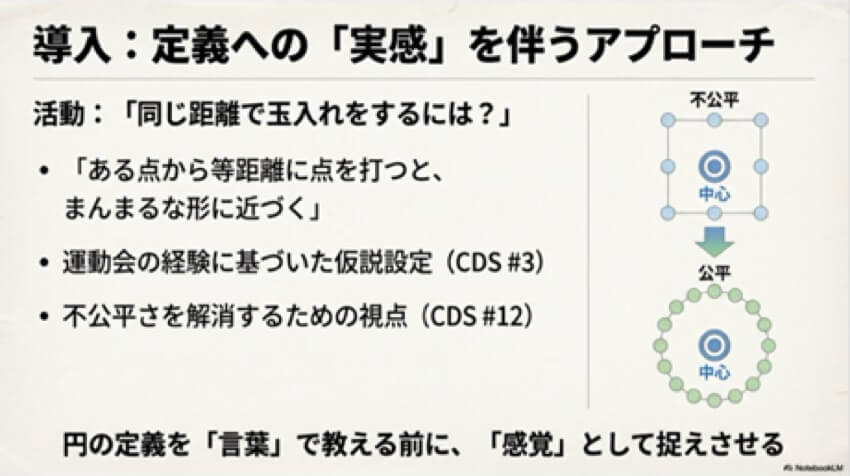① 導入/定義への「実感を伴うアプローチ」(1時間目):