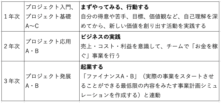 図2 1〜3年次の必修科目「プロジェクト」の学習目標