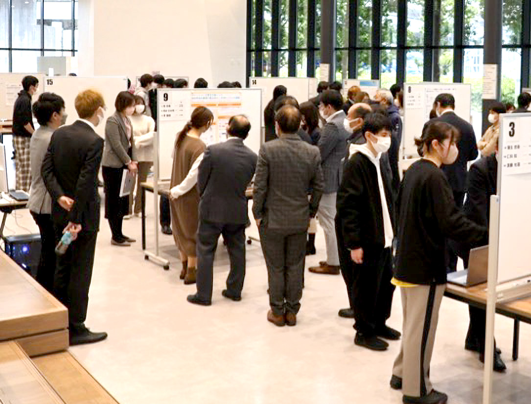 写真3 2023年2月に行われた「未来創造プロジェクト」の成果発表会では、連携先の企業約25社が参加。他大学の教員なども合わせて、学外から計81名が参加し、活発な質疑応答や意見交換が繰り広げられた。
