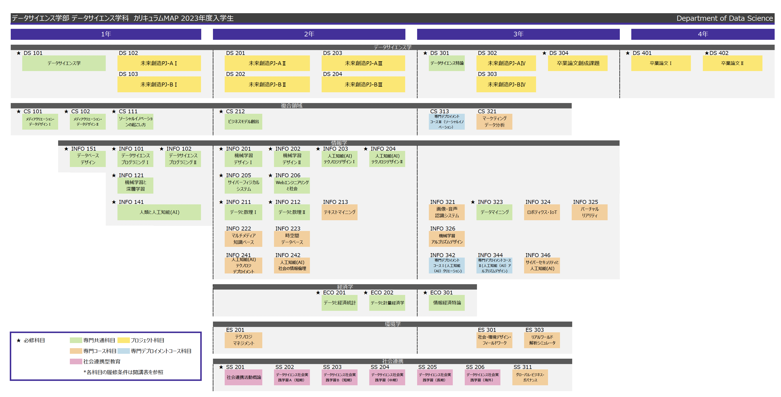 図1 2023年度入学生の専門科目のカリキュラムマップ