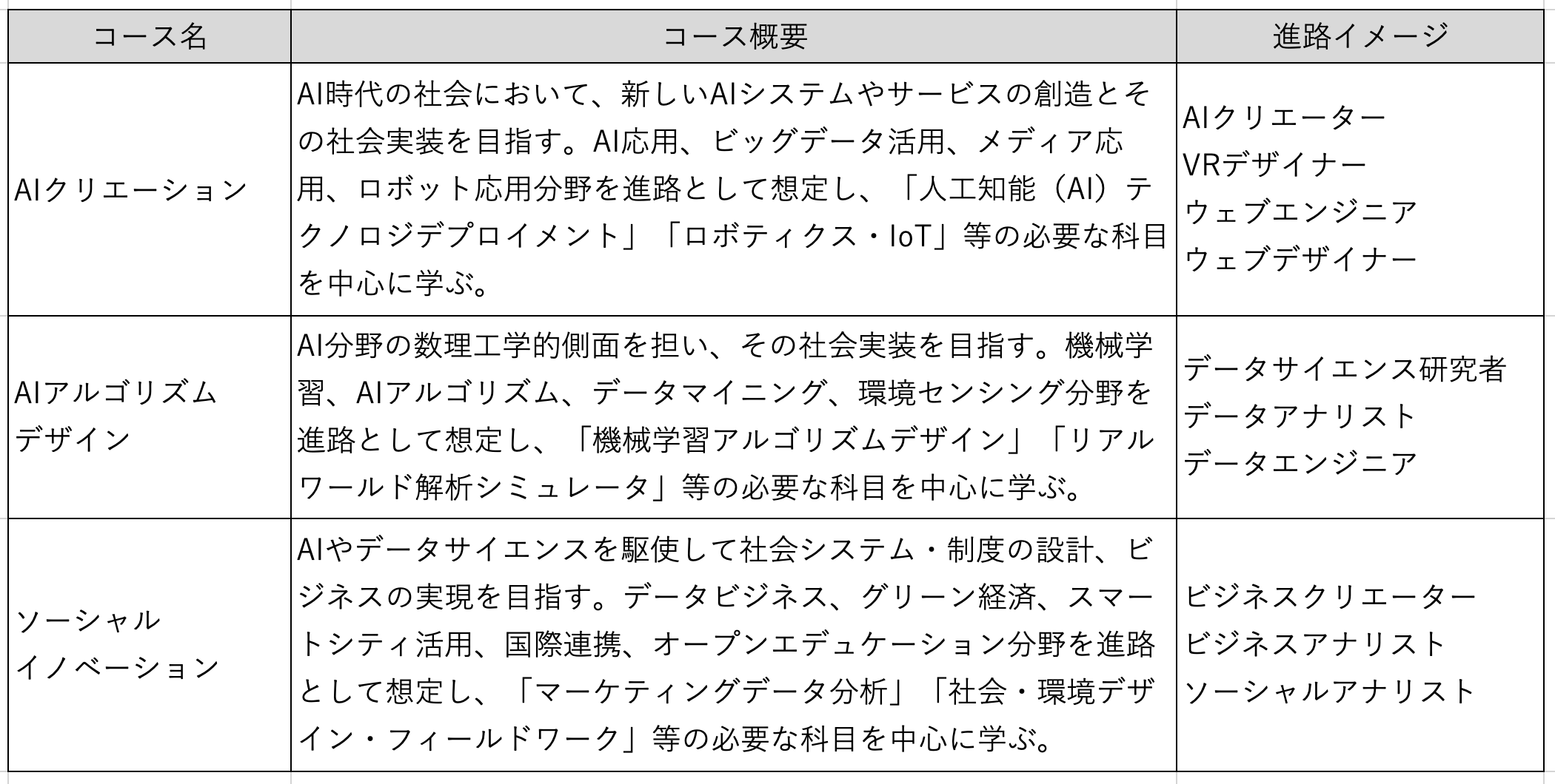 「AIクリエーション」は、ビッグデータ活用やロボット応用などを学ぶコース。