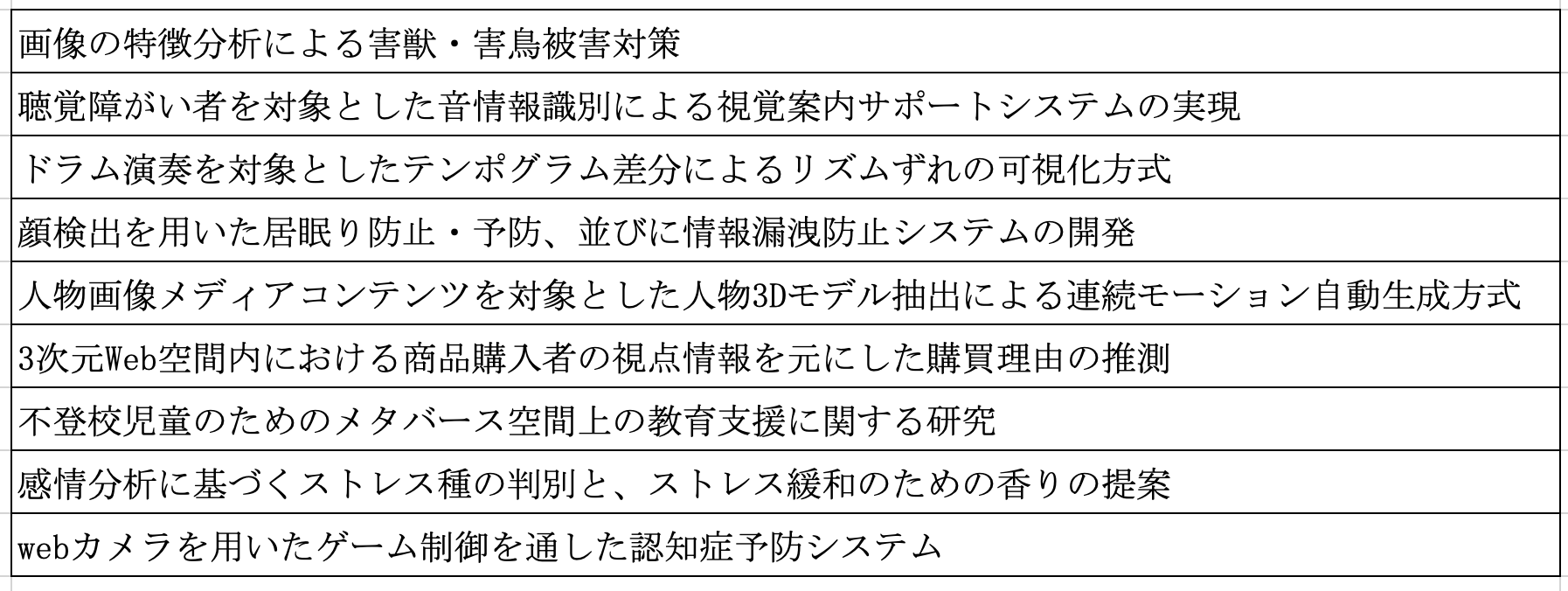 図3 成果発表のテーマ一覧(抜粋)