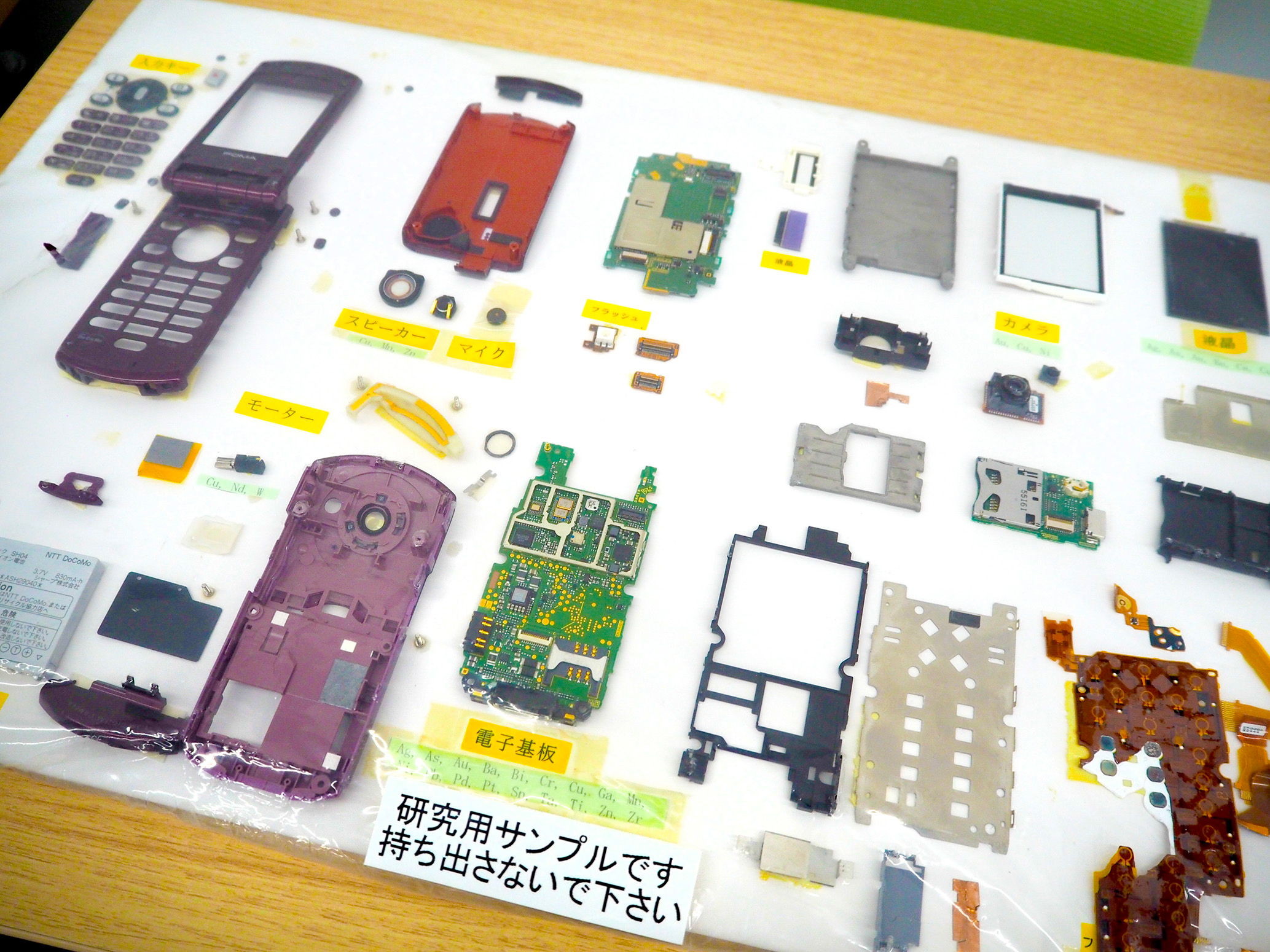 写真4 携帯電話の解体後のサンプル。