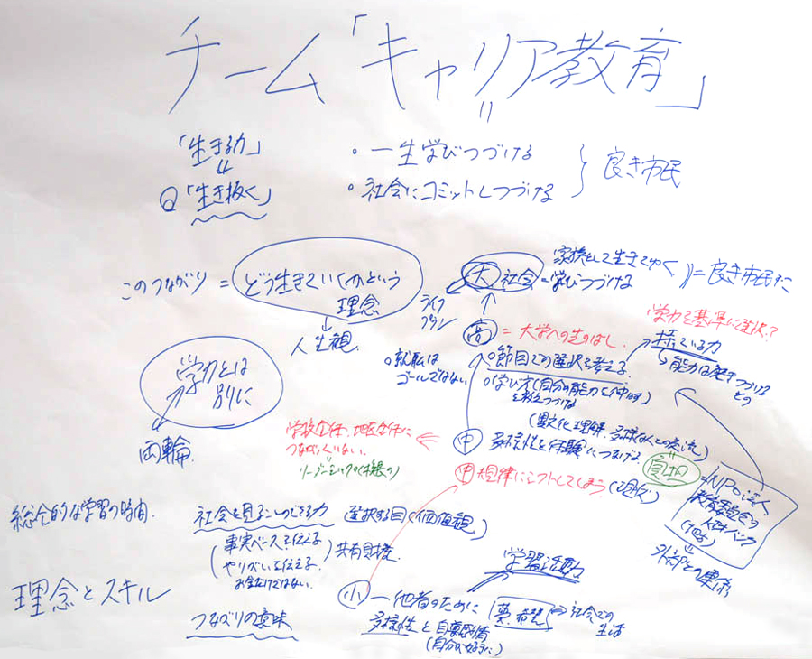 最後に発表したのが「チーム『キャリア教育』」です。チーム名の通り、今後のキャリア教育の在り方を正面から議論。小中高12年間を通したキャリア教育の目的を「一生学び続け、社会にコミットし続ける良き市民を育てること」としました。