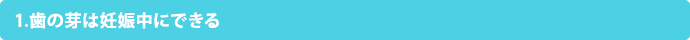 生後6ヵ月くらいにならないと赤ちゃんの歯は生えてきませんが、実は歯の元になる“乳歯の芽”は、すでに妊娠6週目からできはじめています。お母さんがとった今日の栄養が、お腹の赤ちゃんの歯を作ります。そのことを、ぜひ忘れないでください。