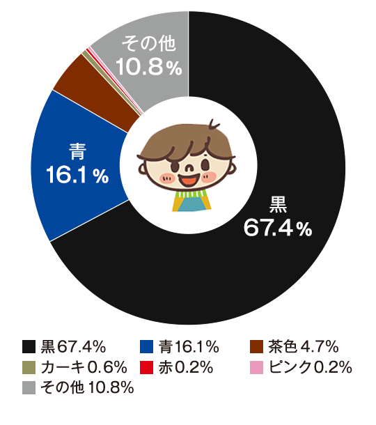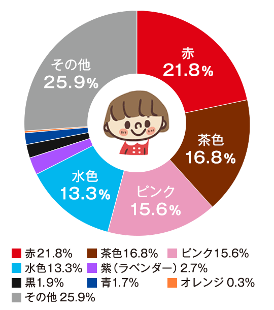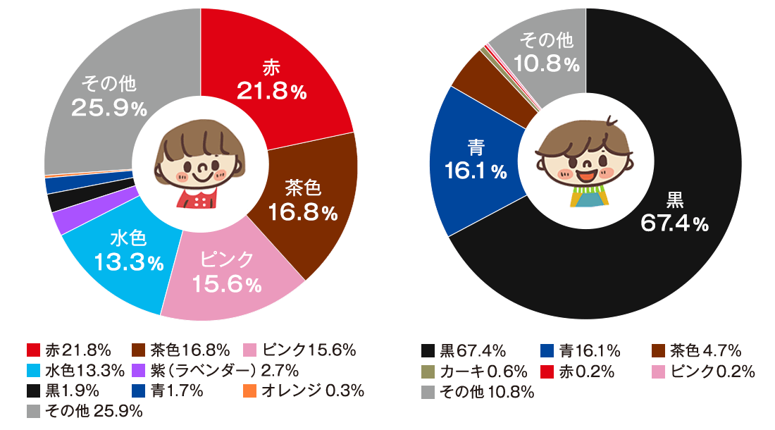 女の子は、ママたち世代でも定番の赤が1位。茶色やピンクも人気です。男の子は、以前から変わらず黒が多いようです。