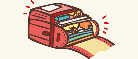 安定感をよくする基本は「体の重心に近く+位置を高く」。教科書などの重いものは体の近く=背側に入れ、体操着袋や筆箱などの軽いものは外側に、お弁当や油ねんどなど、重めの物は上の方に入れて。