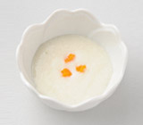 - Aを合わせてよくすり混ぜ、野菜スープを加えてさらに混ぜる。おかゆは加熱解凍してよく冷ます。