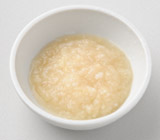 - 加熱解凍したおかゆに湯冷ましを加えてすり混ぜる。