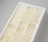 野菜スープにんじん、キャベツ、かぶ、玉ねぎなどを大きめ(4~5cm大)に切り、ひたひたの水と昆布を加え煮て、こす。大さじ1ずつ冷凍する。