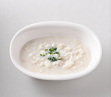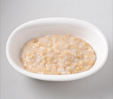 - 具はすべて加熱する。かゆを器に盛り、具をのせる。だし汁に水溶き片栗粉少量を加えて電子レンジで10秒加熱し、上からかける。