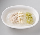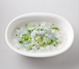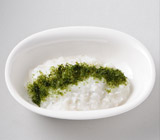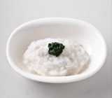 - しらす干しは熱湯を回しかけて塩抜きし、細かく刻む。かゆに、しらす干し、だし汁を加えてよく混ぜ、青のりをかける。
