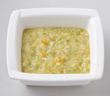 野菜のみじん切りブロッコリー、かぶ、かぶの葉、にんじん、キャベツ、玉ねぎをやわらかくゆでるか、蒸して、みじん切りにする。大さじ1~2ずつ冷凍する。