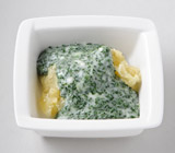 - ホワイトソースとほうれん草をよく混ぜて、さつまいもにかける。