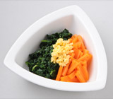 ゆで野菜かぶ、かぶの葉、にんじん、青菜(ほうれん草や小松菜など)をやわらかくゆでるか、蒸して、3~5mm角に刻む。小分け用カップに大さじ1~2ずつ入れ、冷凍する。