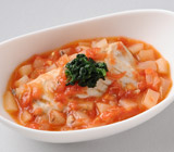 - トマトは湯むきして種を除き、細かく刻む。鍋に水と粉寒天を入れて火にかけ、寒天が完全に溶けたらトマトを加えて火を通す。粗熱がとれたら水で濡らしたバットに流し入れて冷蔵庫で冷やし固める。