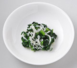 - フライパンにサラダ油を薄くひき、しらす干し、ほうれん草を入れて炒める。