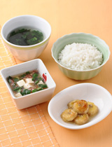 - 小松菜5mm角大さじ2 わかめ(戻して刻む)小さじ2、