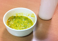 ささみ、レタス、納豆入りうどんです。納豆を単品であげたときは食べられなかったのですが、うどんに入れると食べてくれました。あとは大好きなバナナヨーグルトです。
