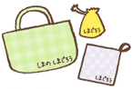 ●お弁当箱、フォーク、スプーン、おはし、水筒、はさみ、のり、クレヨン