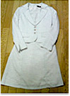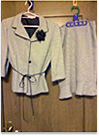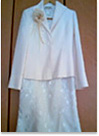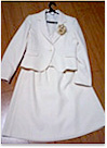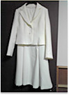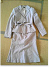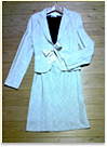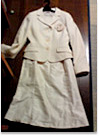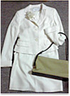 スーツ上下とワンピースのセットになっていて、体型の変化などにも対応できると思ったから。オフホワイトを選んだのは色物より白が流行りだったから。