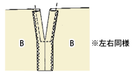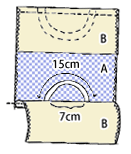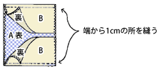 (8)AとB接ぎ合わせ位置で2つ折りして、1.5Cの所を縫う