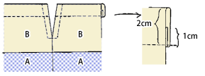 (2)A,Bともにタテ縫い代(両側)にほつれ防止のための、ロックミシン又はジグザグミシンをかける。