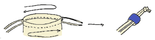 工程(3)でAとBの間にテープを挟んで一緒に縫う