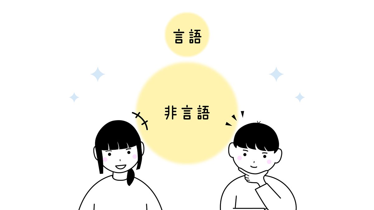 「コミュニケーション力」とは、自分の思いを正確に伝え、相手の思いを正確に受け取る力です。メラビアンの法則では、コミュニケーションの言葉の部分は7%で、あとの93%は視覚や聴覚など、言葉以外のもので感じており、言語、非言語両方育んでいく必要があります。