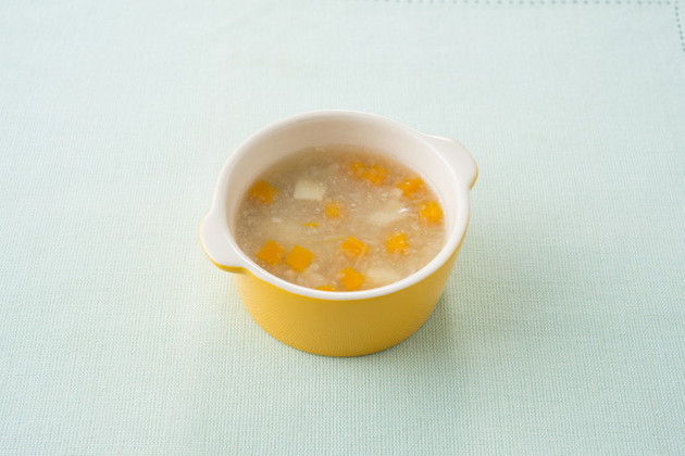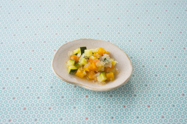 - らくらく☆にこにこ離乳食レシピ カミカミ期 かぼちゃとズッキーニのスープ煮