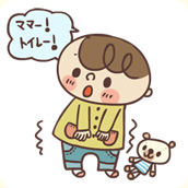 トイレに慣れてきたら、おしっこがたまった感覚や、トイレまでちょっとだけがまんすることを覚えられるように、誘うタイミングを少し遅らせてみましょう。
